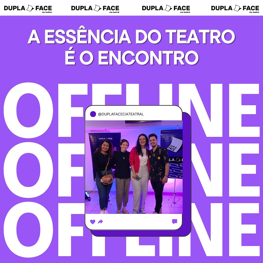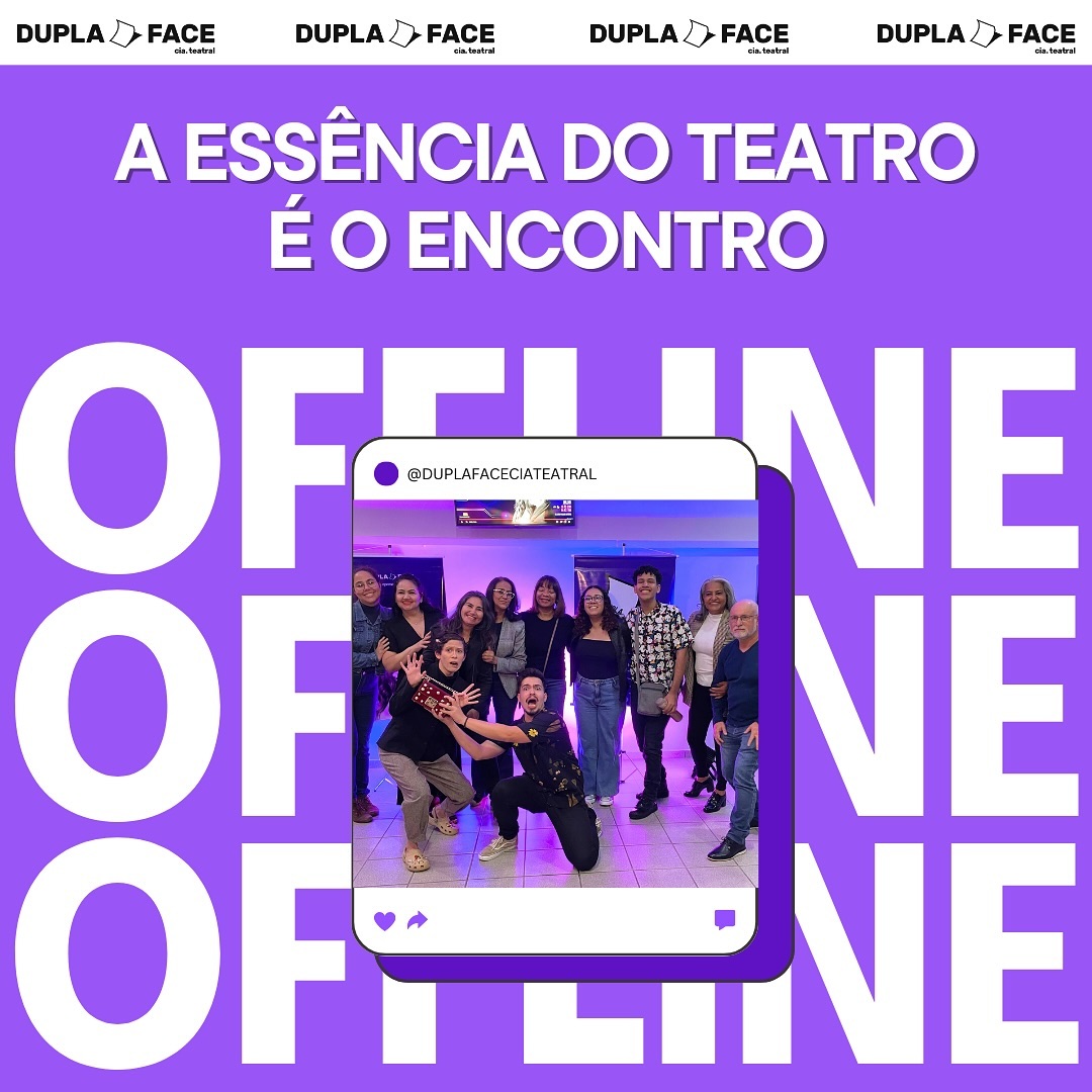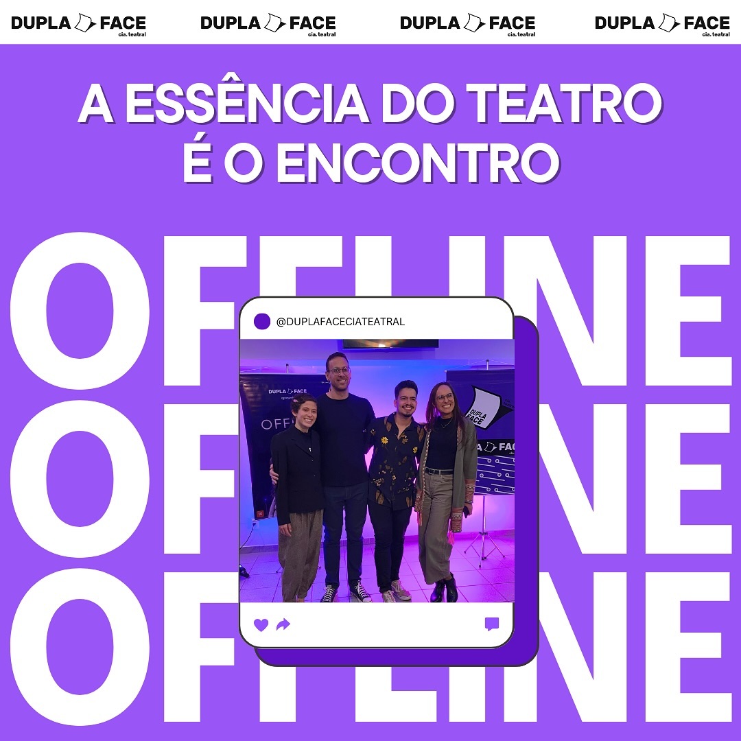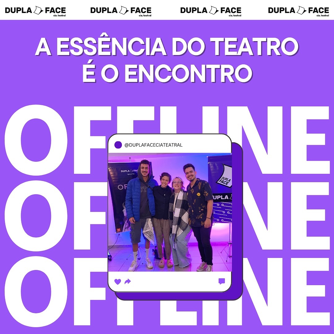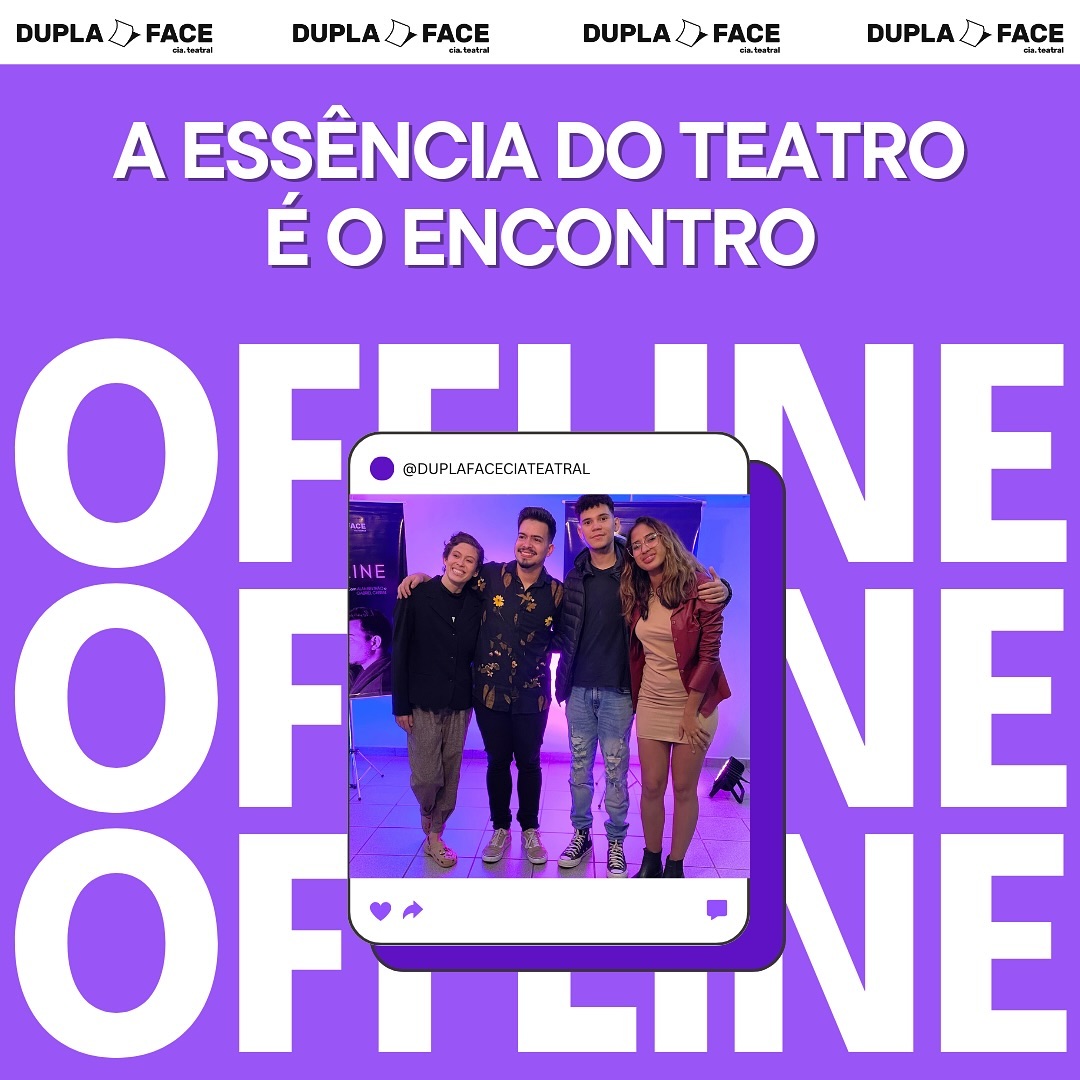 OFFLINE é um espetáculo teatral que consiste em revelar as relações no mundo virtual/digital, apresentando as facetas que envolvem este universo, denunciando de forma crítica e bem humorada os “vilões” das redes sociais. Os atores Alan Beltrão e Gabriel Cabral dão vida a dois blogueiros brasilienses que estão imersos em um mundo digital paralelo à realidade.